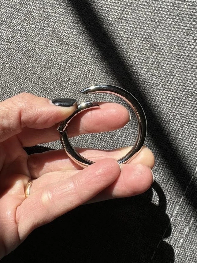 Aro de niquel de la mejor calidad para poder sumar todos los accesorios que quieras a tus bolsos y carteres sin lastimar el cuero.