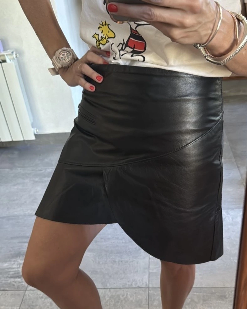 Descubrí la elegancia de la Pollera Positano, confeccionada en 100% cuero napon impermeabilizado, que combina estilo y funcionalidad para realzar tu look con un toque exclusivo.