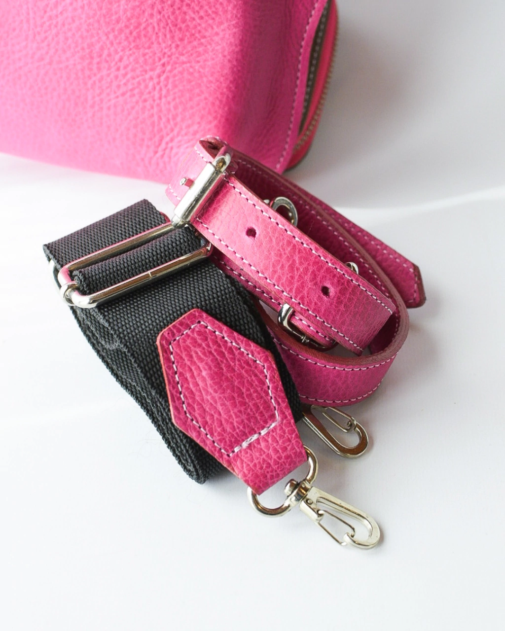 Descubrí la elegancia y versatilidad de la Riñonera Angie, confeccionada en exclusivos cueros Pampa, Anaconda o Crocco, que aportan un estilo único y distinguido. Su forro fucsia añade un toque de sofisticación y modernidad, mientras que el bolsillo interno con cierre brinda seguridad para tus objetos personales.