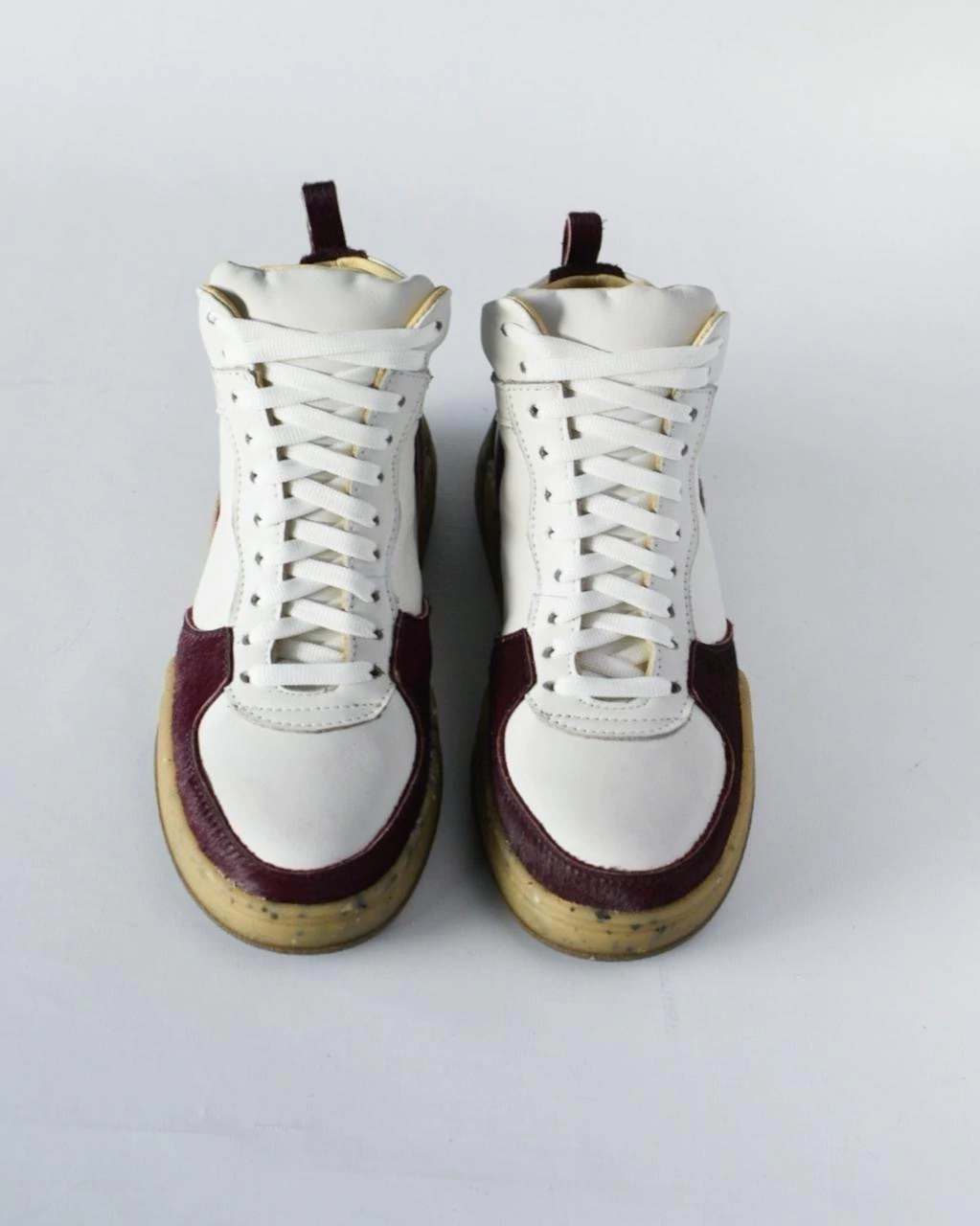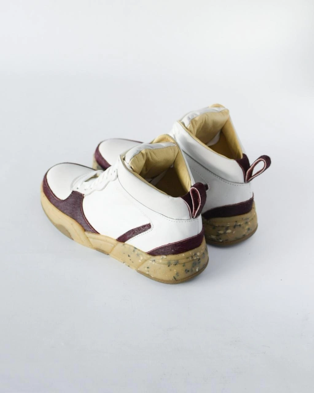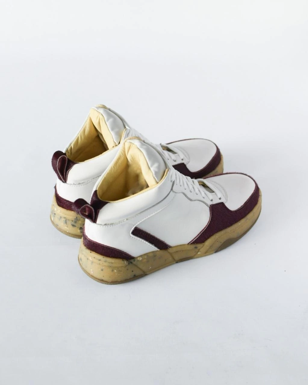 Las Zapatillas Charo Blanco + Rubí son la combinación perfecta de estilo urbano y sofisticación artesanal. Confeccionadas en 100% cuero blanco, estas botitas altas llegan hasta el tobillo, destacándose por sus delicados detalles en puntera y talonera elaborados en cuero pelo color rubí, que aportan un contraste sutil y elegante.